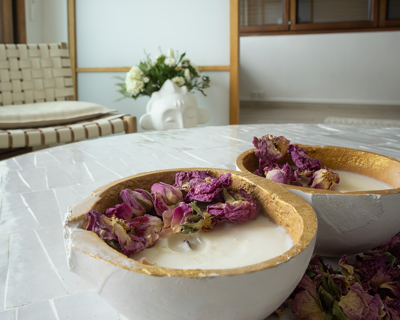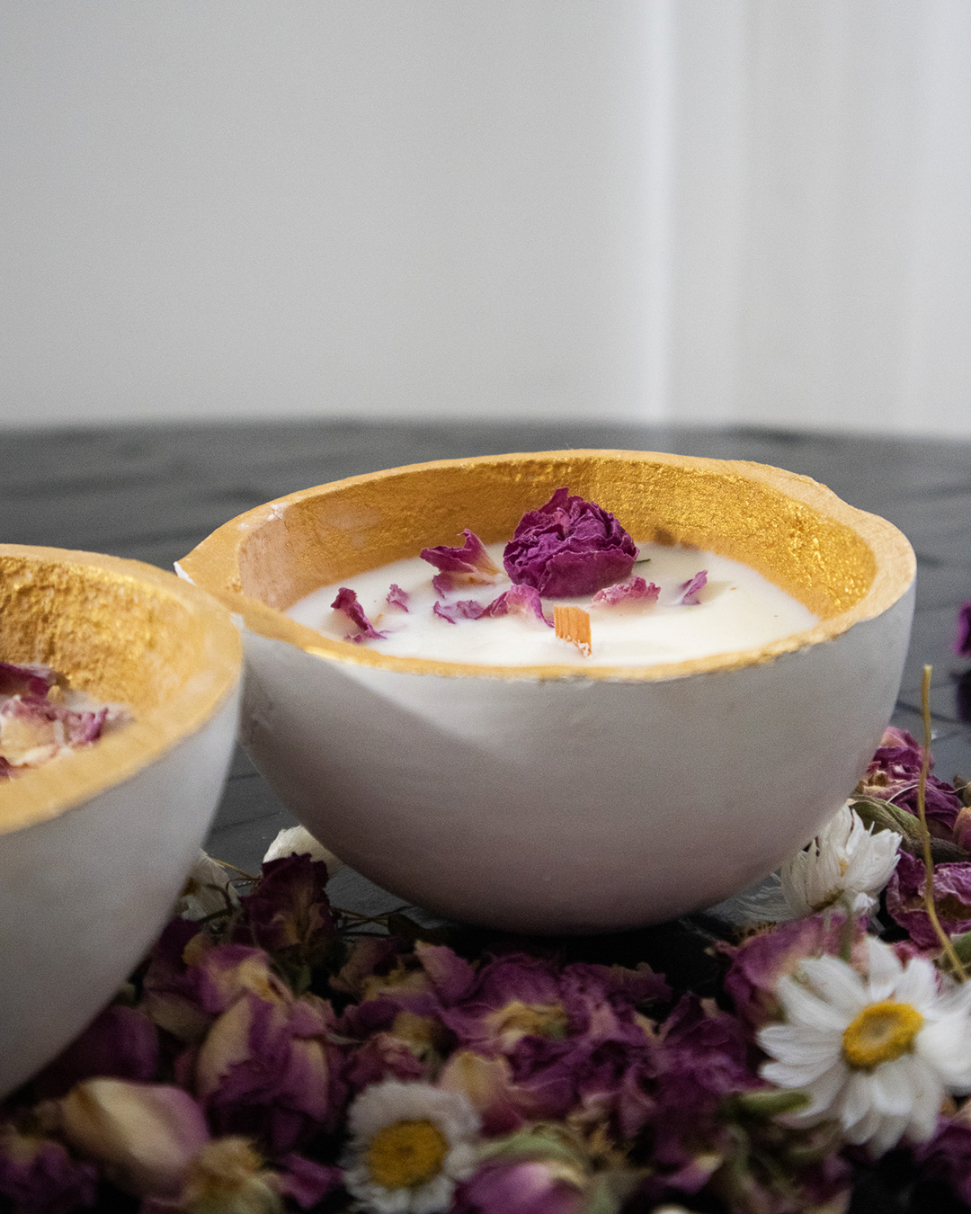 Réalisé à base de calebasse africaine finement dorée et ornée de fleurs de rose séchées, son design est accompagnée d'une mèche en bois offrant un crépitement apaisant pendant la combustion. Une création envoûtante, une note d'origine africaine qui diffuse lumière et quiétude dans votre intérieur.
