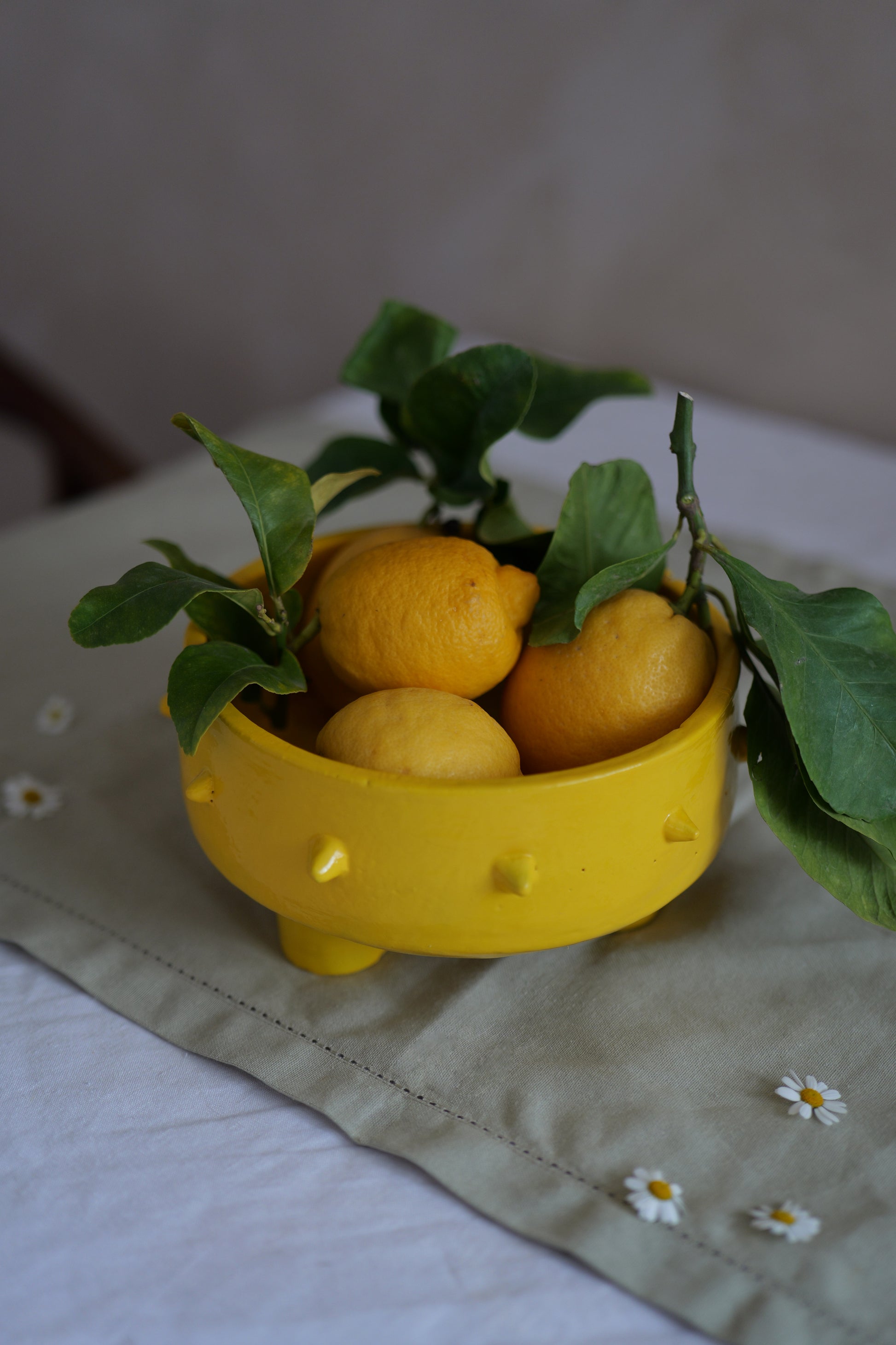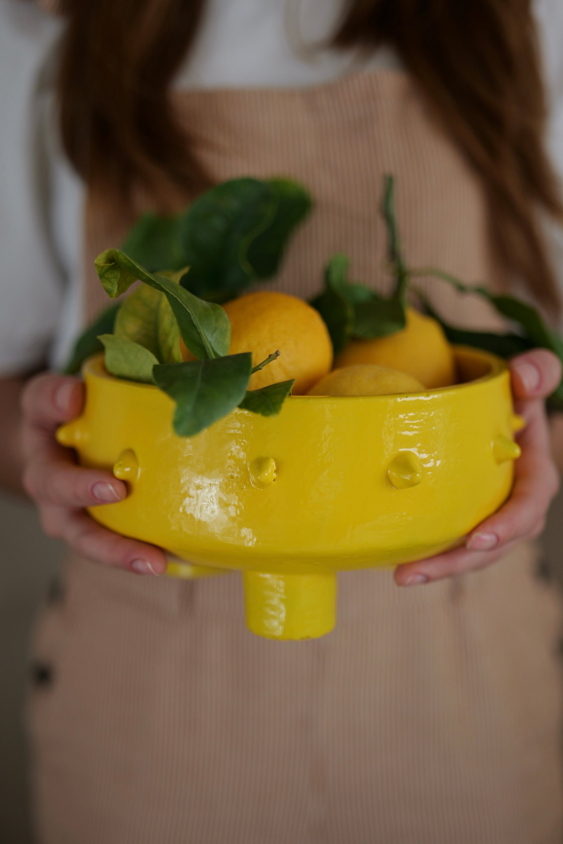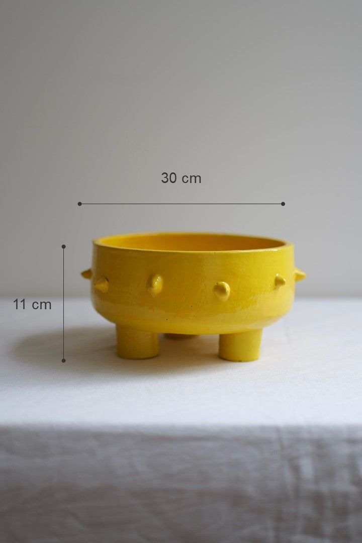 Technique : Après avoir été façonné à la main avec expertise, chaque saladier est laissé à sécher avant d'être cuit à haute température pour garantir sa solidité. Ensuite, l'émail jaune vibrant est appliqué pour apporter couleur et brillance, offrant à chaque pièce une finition unique et durable.