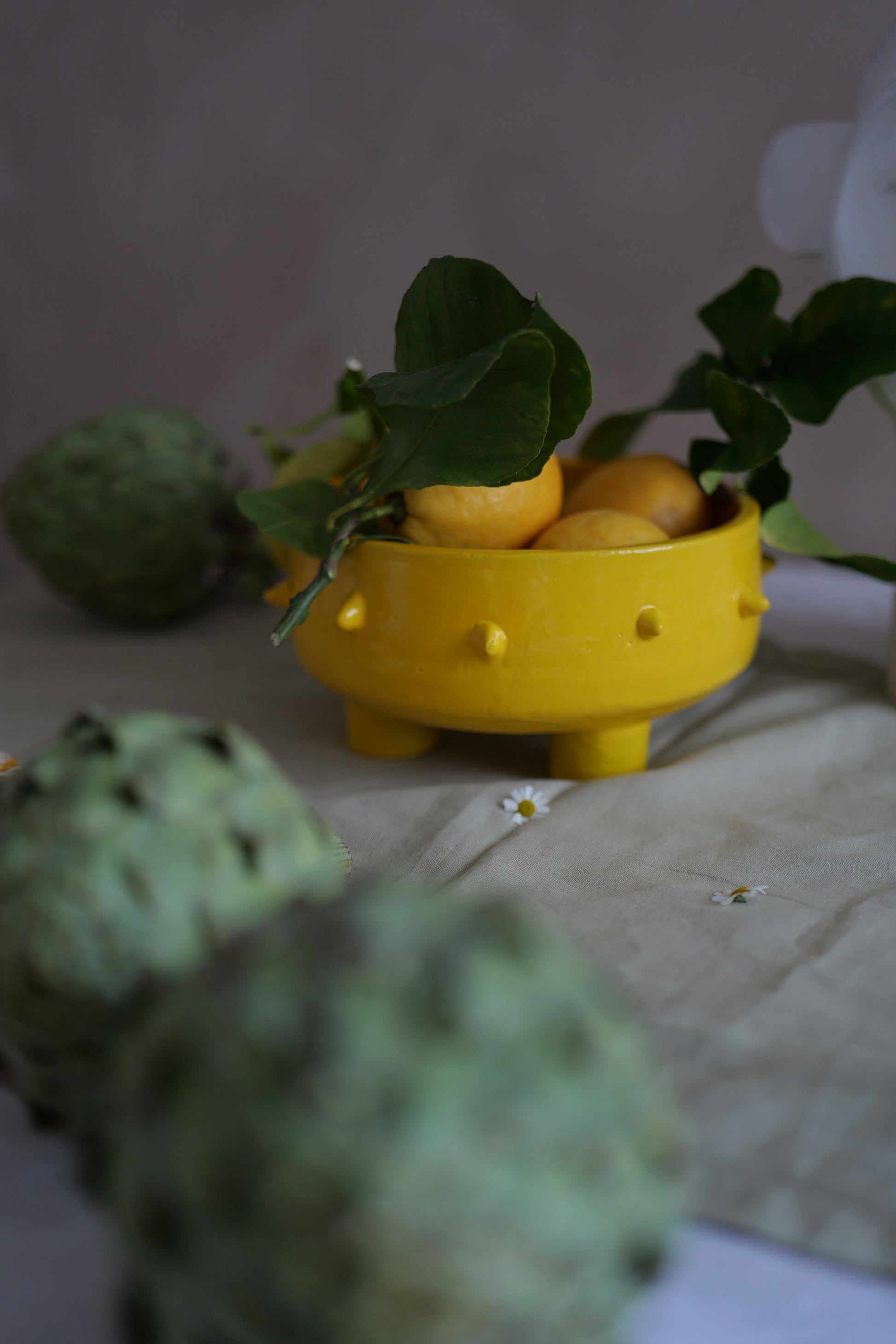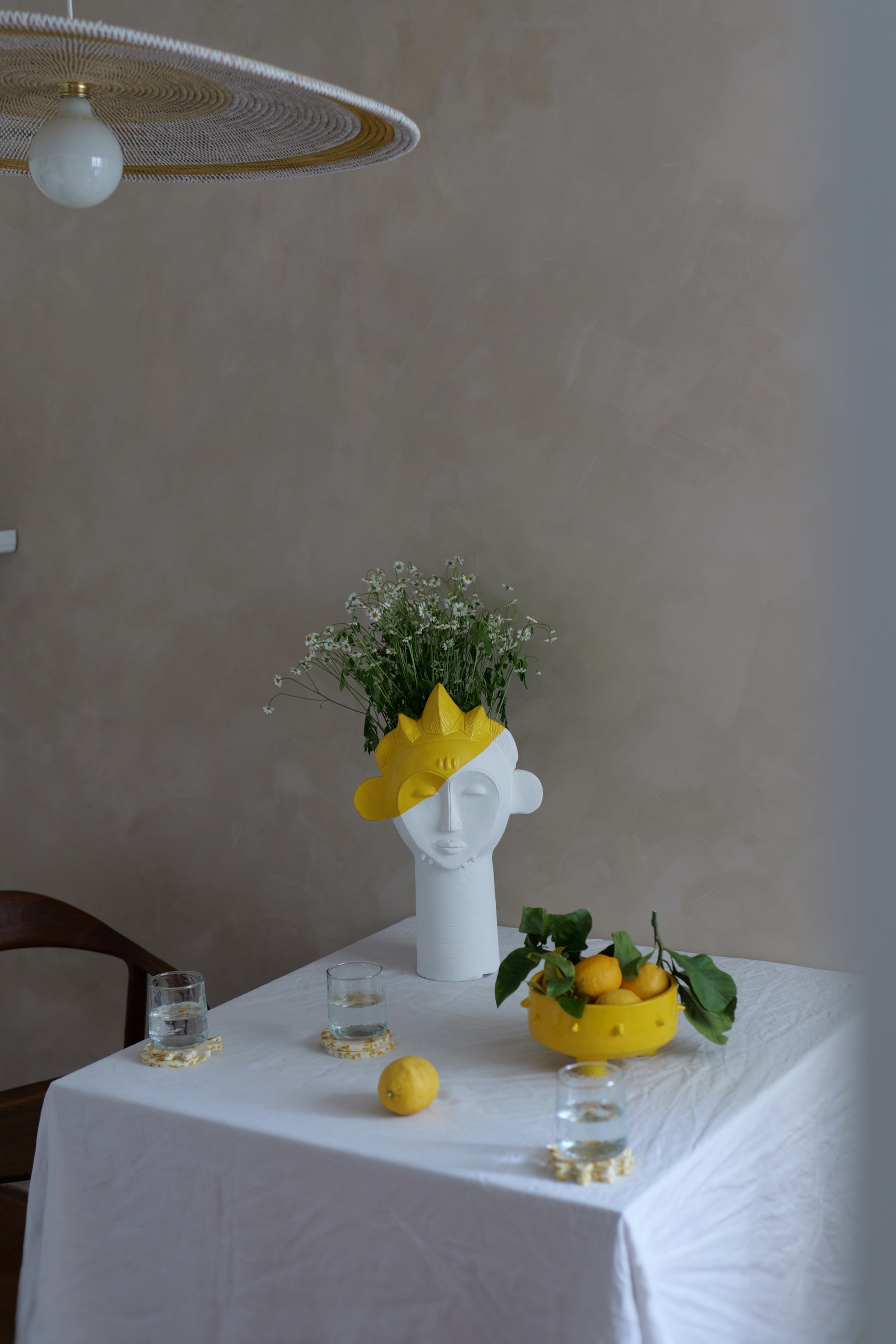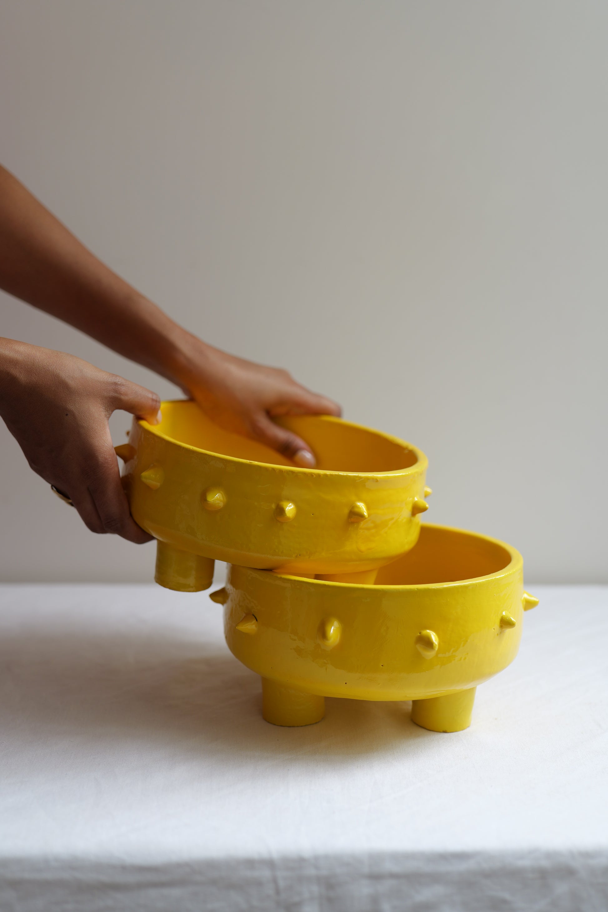 Technique : Après avoir été façonné à la main avec expertise, chaque saladier est laissé à sécher avant d'être cuit à haute température pour garantir sa solidité. Ensuite, l'émail jaune vibrant est appliqué pour apporter couleur et brillance, offrant à chaque pièce une finition unique et durable.