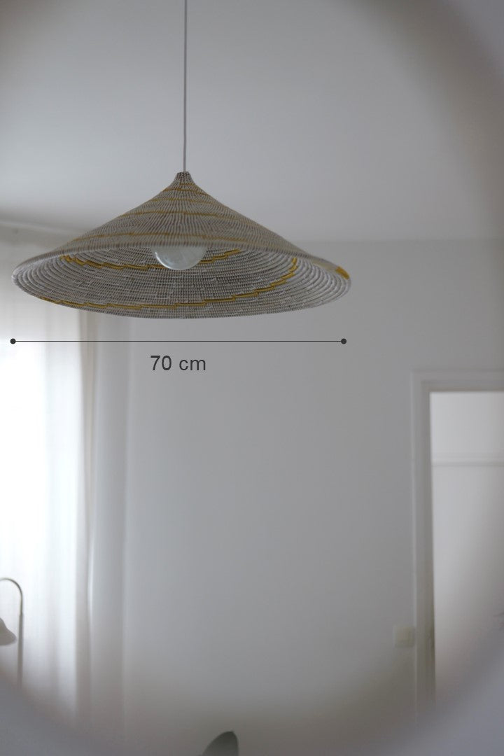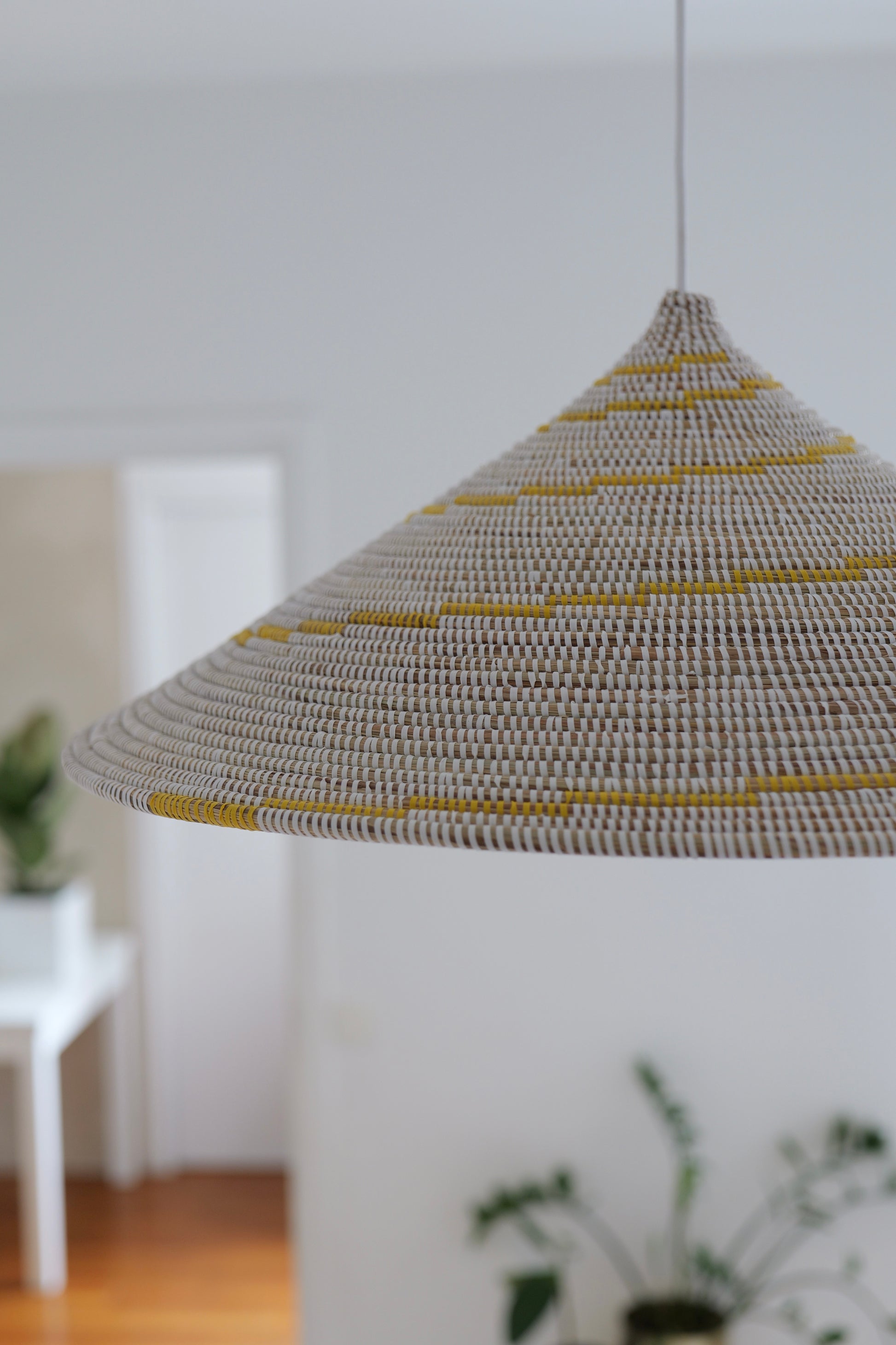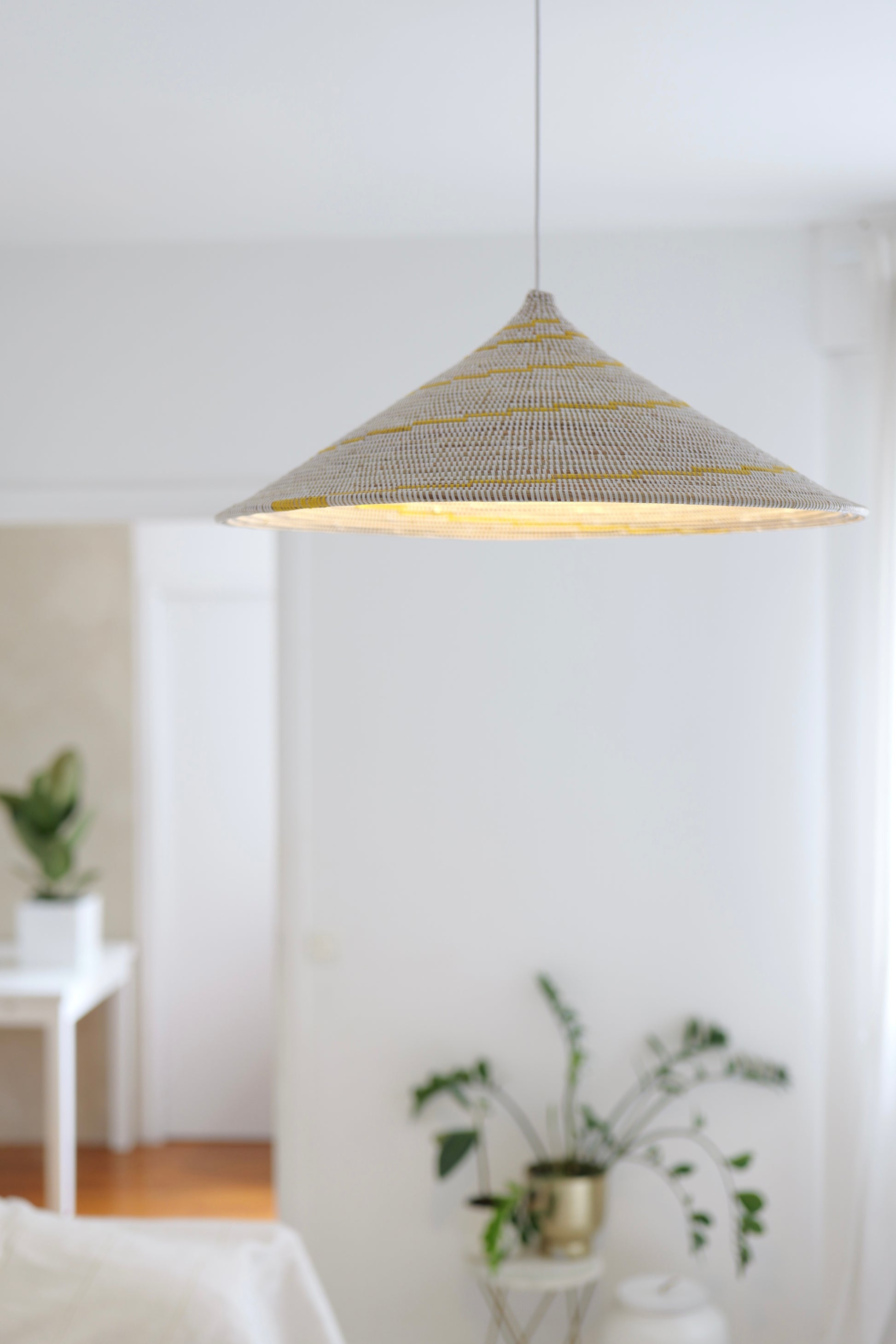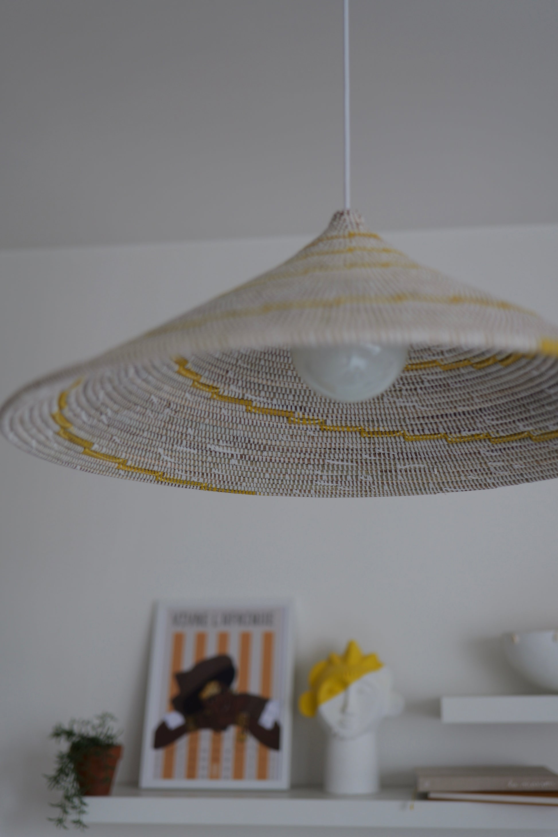 Conçue par Violaine Beh, Designer et fondatrice d'Atelier 22B, et réalisée à la main au Sénégal, cette suspension embrasse l'élégance et l'authenticité africaines, illuminant votre espace dans une entrée, un couloir, une pièce de vie ou même dans une chambre !