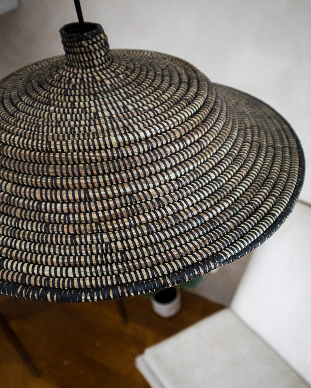 Tressée à la main avec des fibres de jonc de mer, chaque pièce témoigne du savoir-faire vannier transgénérationnel. Conçue par Violaine d'atelier 22B, la suspension "Lueur Absolue" embrasse l'élégance et l'authenticité africaines, illuminant votre espace en solo, en accumulation dans une entrée, un couloir, une pièce de vie ou même dans une chambre !