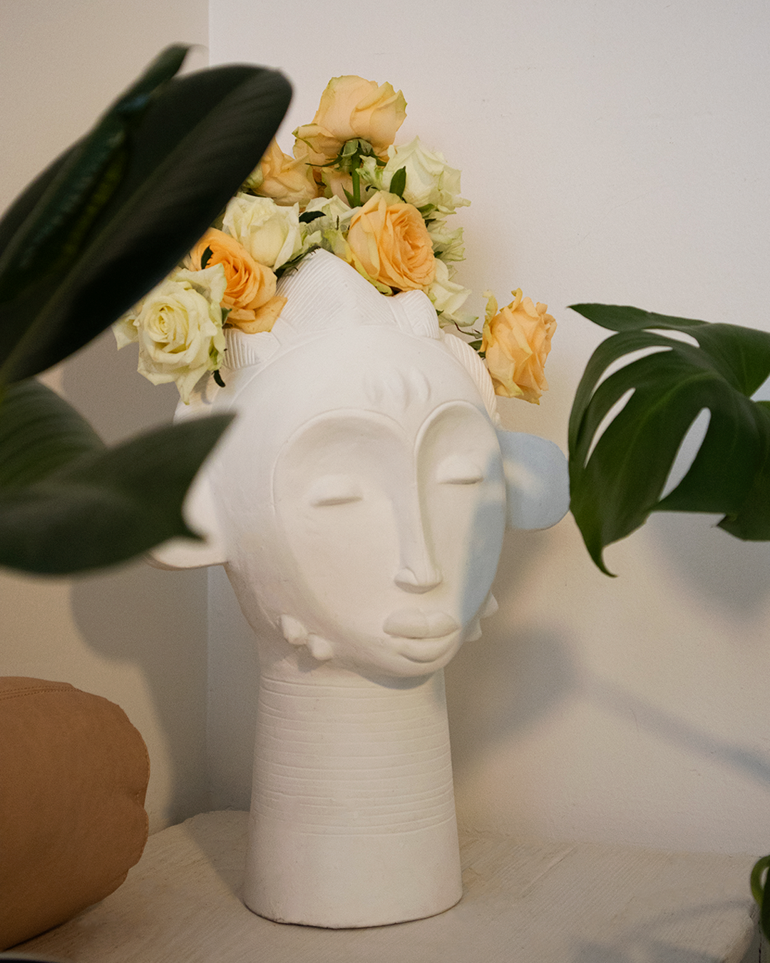 Conçu par Violaine d'atelier 22B à Paris et réalisé au Sénégal, ce vase de luxe raconte ainsi une histoire artistique riche reprenant la symbolique des masques africains: