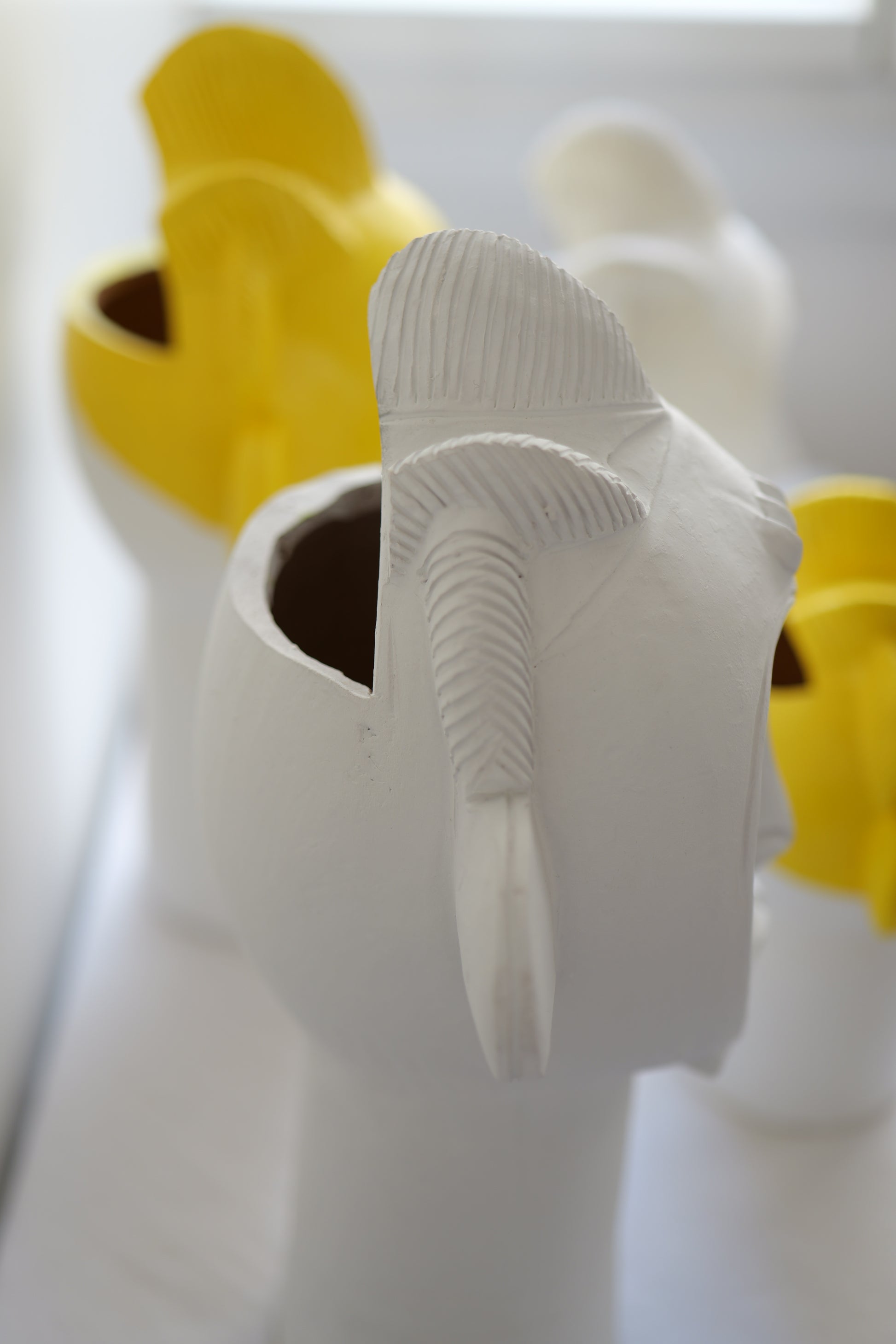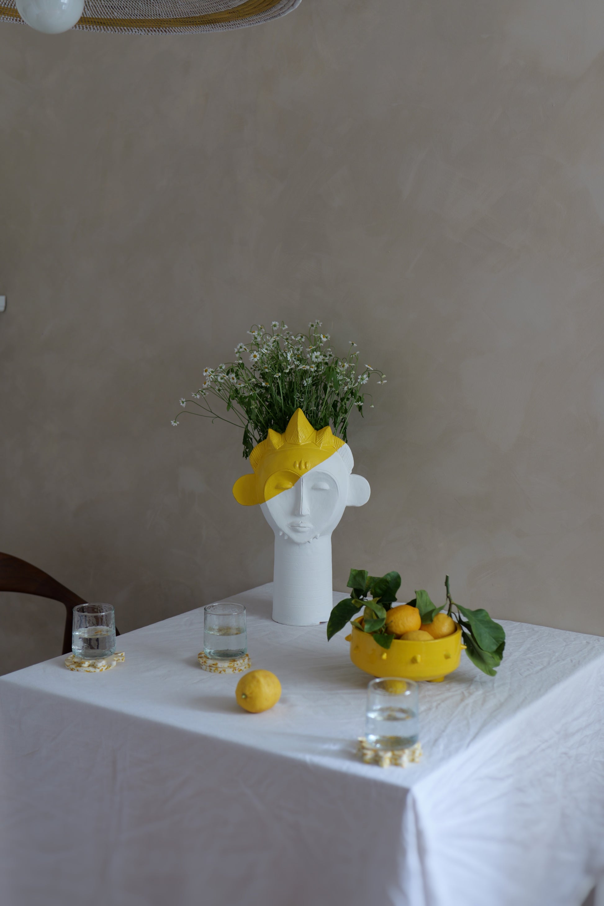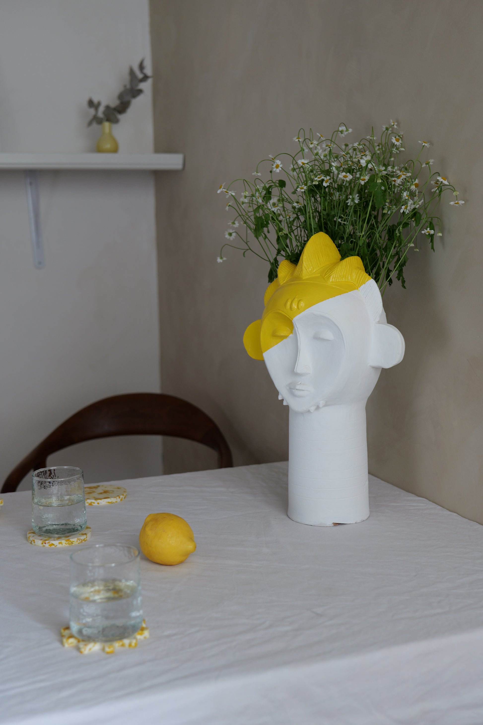 Disponible en trois tailles et deux couleurs (blanc et jaune soleil ou blanc intégral), ce vase imposant sublimera votre intérieur avec son aura unique.