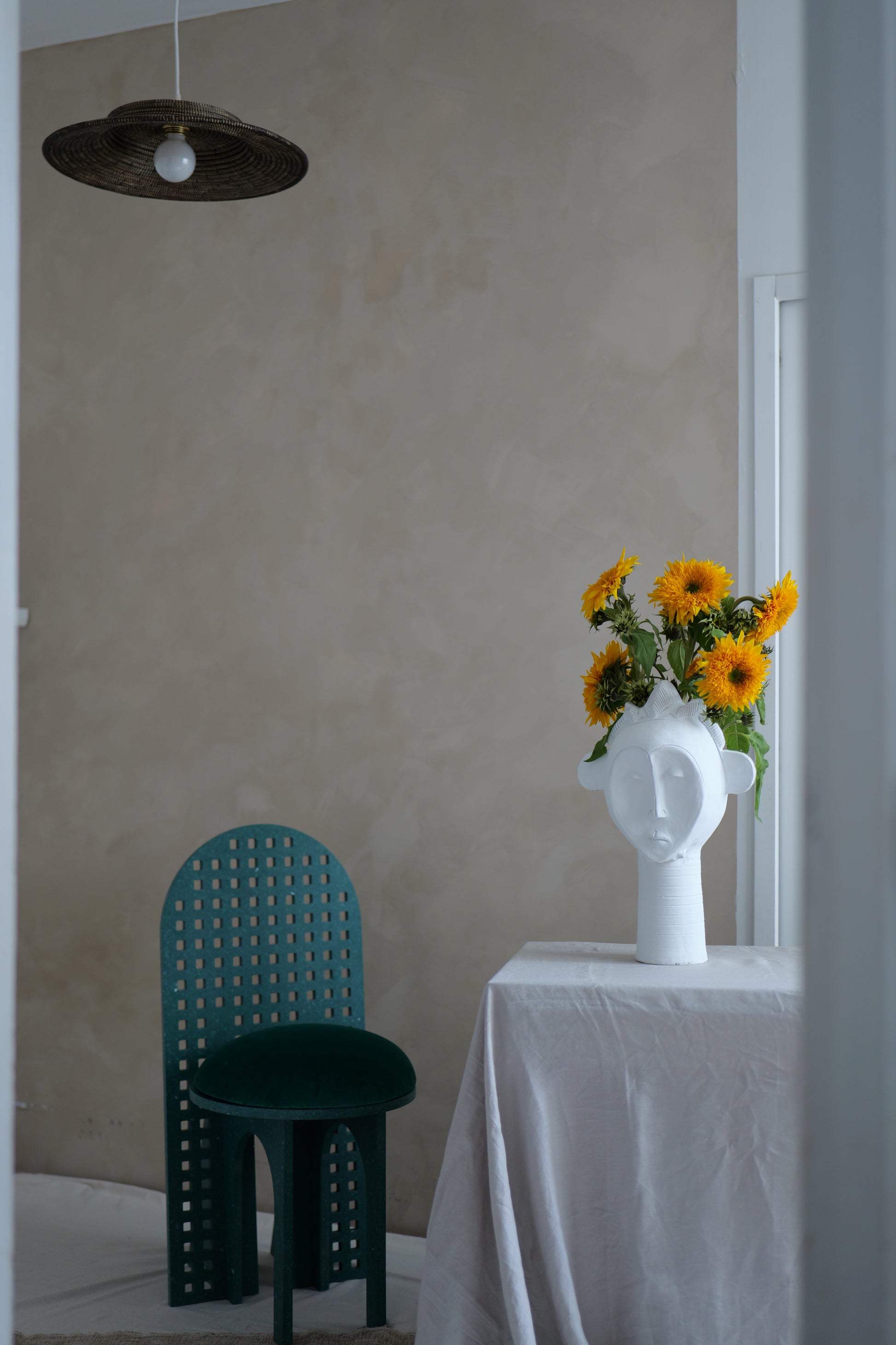 Ajoutez une touche d'élégance à votre intérieur avec ce vase en céramique imposant, orné d'un magnifique masque africain. Conçu par Violaine d'Atelier 22B à Paris et réalisé au Sénégal, ce vase de luxe fusionne design contemporain et art africain, tout en racontant une histoire artistique riche.